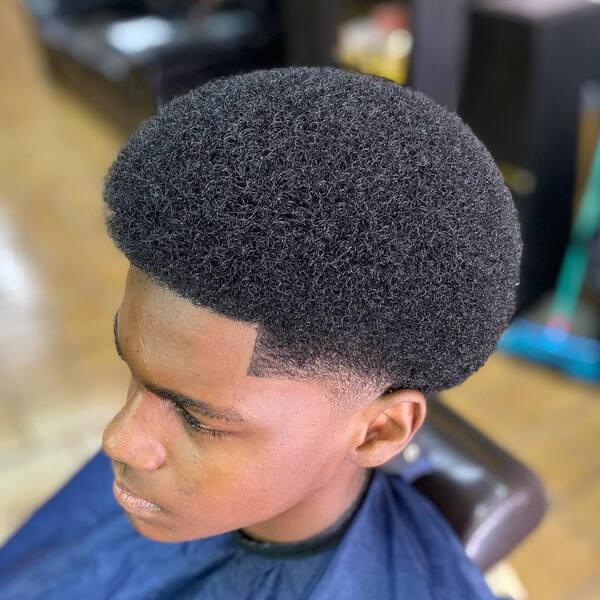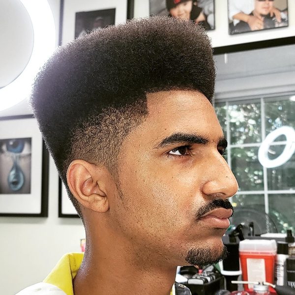 Questo stile classico è un afro piatto con una dissolvenza. Questa sarebbe una grande acconciatura per gli uomini che hanno fatto crescere i capelli per un po 'e stanno cercando un nuovo stile con un'atmosfera retrò.