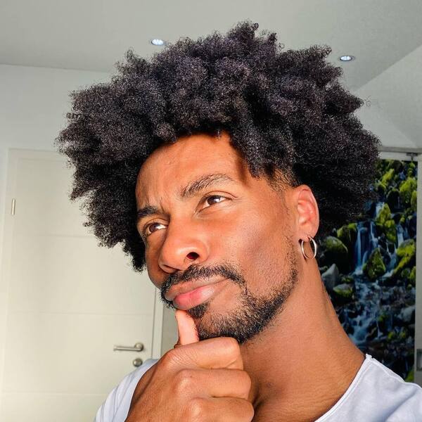 Ecco un'acconciatura per uomini che hanno gravi vibrazioni retrò. Nella foto sopra indossa uno stile afro retrò con una bella dissolvenza del tempio attorno ai bordi. Questo stile era super popolare negli anni '80 e '90, ma molti uomini lo stanno ancora dondolando oggi.
