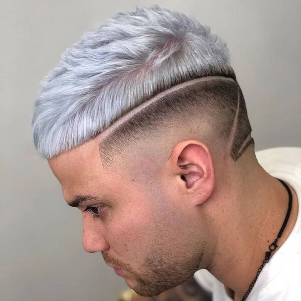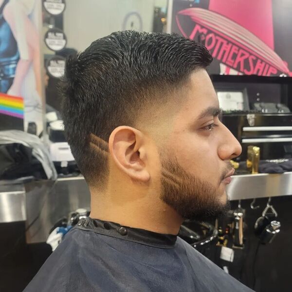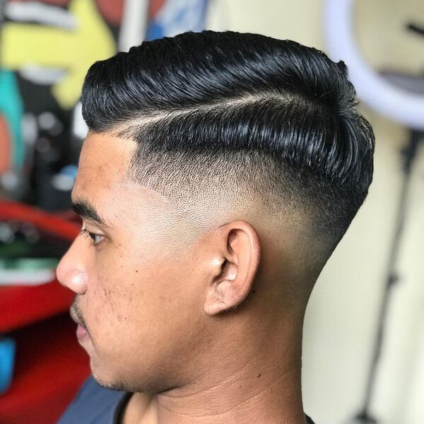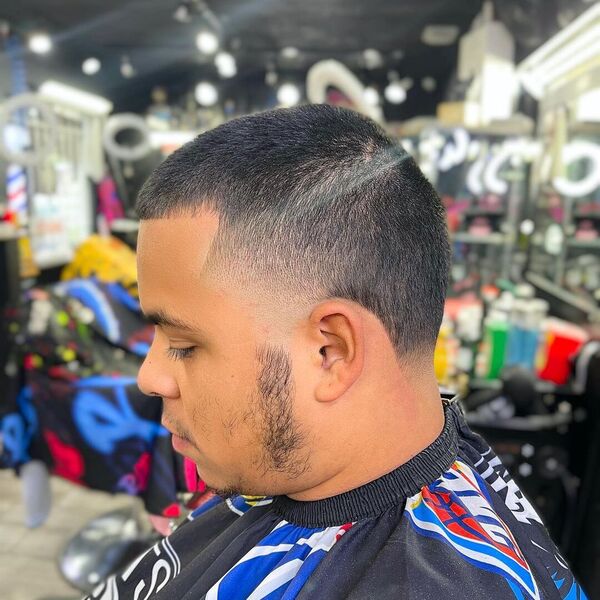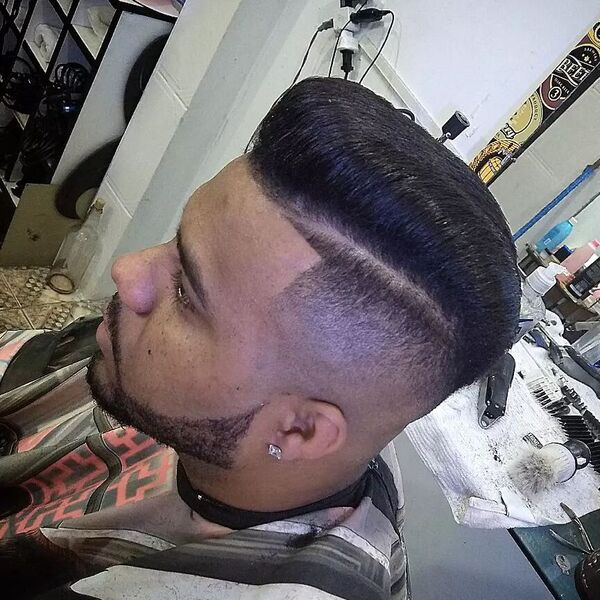 フランスのカットを次のレベルに引き上げる別の方法は、このドープフェードをV字型エッジとパーツをカットして追加することです。このタイプのデザインを行うと、群衆の中で髪を際立たせ、次のスタイル。