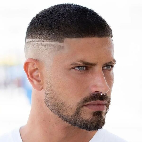 短くてシンプルは、このハンサムなヘアカットを説明する最良の方法です。彼は上の写真に短いトリミングされたあごひげがある肌のフェードを着ていて、とてもハンサムに見えます。