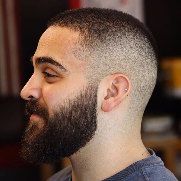 このスタイルでもバズカットを揺さぶることができます。上の外観では、彼はこのあごひげを成長させることを決めました、そして、バズカットと長いひげの髪のコントラストはとてもスタイリッシュです。清潔で短くしてください!側面とトップの音量が少ないと、ふさふさしたあごひげを曲げることができます。