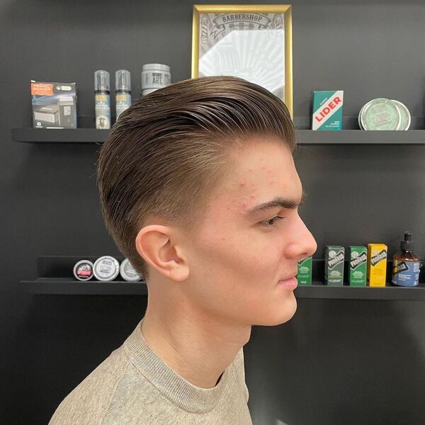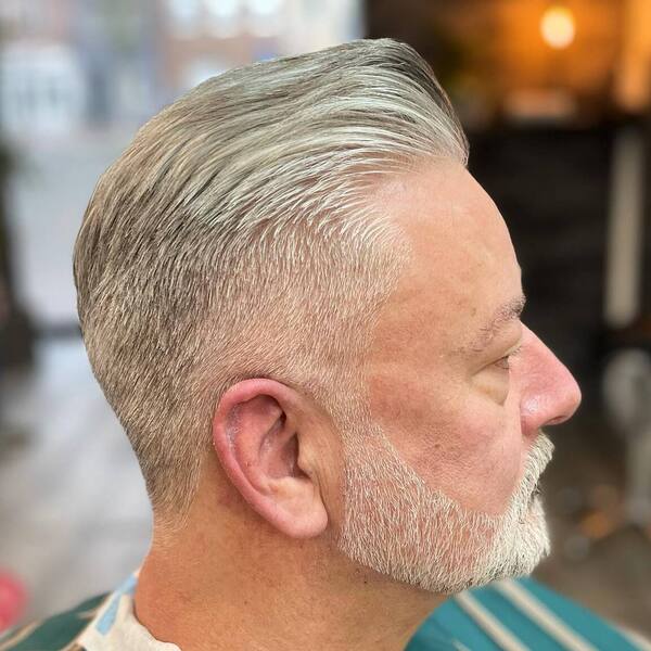 これは、フランス風のカットのすべての特徴を持っている男性のためのブラッシュアップされたヘアスタイルです。背面は短く、側面は短く、上の髪は側面に部分的に磨かれています。これは、あらゆる年齢の男性が試してみるのに最適なスタイルです。