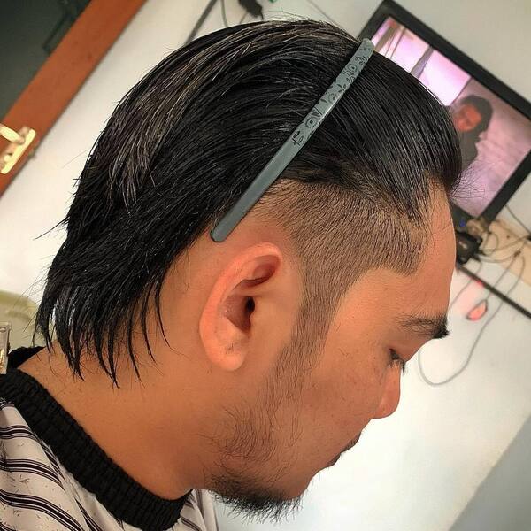 サイドパーツヘアスタイルは、一部の男性が対処しなければならない厄介なカウリックを偽装するための最良の方法の1つです。このクラシックなサイドカットは、髪の毛をかなり長く保ち、うなじまで続く耳の周りの素敵なフェードがあります。