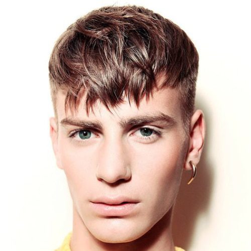このヘアスタイルは、髪を前からブラッシングすることによって作成されます。前髪は、少量の髪のワックスで長くて乱雑にされています。ハイライトが追加されている場合、これは特に印象的になり、間違いなくすべての注意を引くことができます。