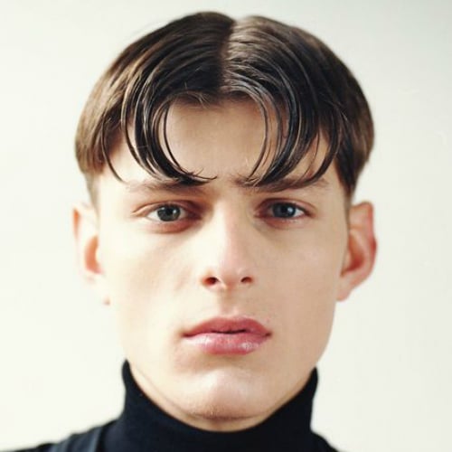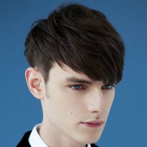 前髪は、スパイクとは異なり、すべての顔の形でうまくいかないでください。このスタイルに行くことを選択する前に、まず機能と顔を分析する必要があります。それは主に長い顔や楕円形の顔を持つ男に適しています。明るい色のスーツはあなたとあなたの髪を際立たせます。