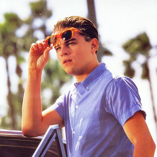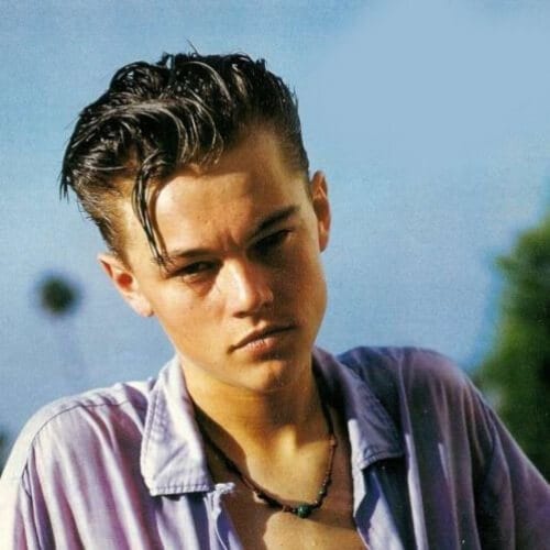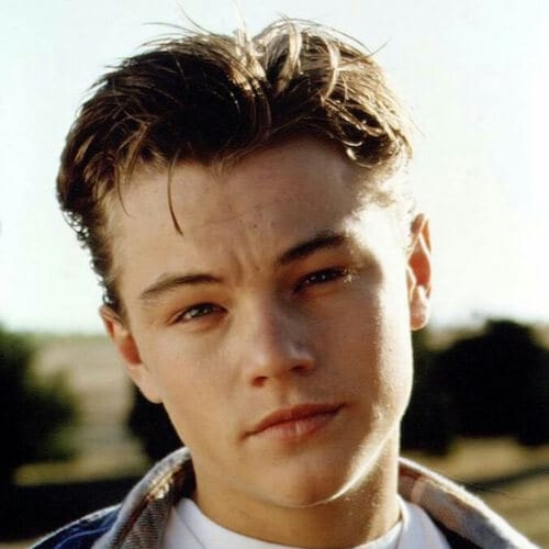 レオナルド・ディカプリオは、ジョニー・デップと一緒に演奏したギルバート・グレープを食べるものにおける彼の役割のために、中間の別れの前髪を着ていました。後者は、彼の髪を中程度の長さにカットし、滑らかにしました。