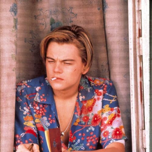 バズ・ルールマン監督に任せて、レオナルド・ディカプリオの最も永続的な画像の1つを作成してください。これは、モンタギューの精神を代表することを意図した映画のためにカスタムメイドで、世界中のミレニアル世代に大いに訴えたハワイのシャツを着ているロミオジュリエットの若い俳優です。