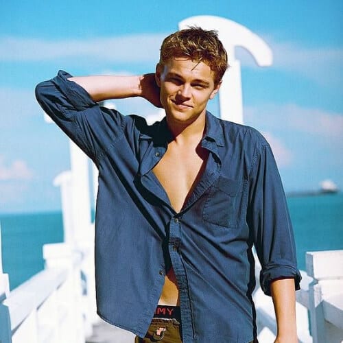 レオも常に前髪で大きかった。彼はもうそれらをスポーツしていませんが、彼は90年代と2000年代に重くさかのぼっていました。ここで彼は、眉毛に手を伸ばす重い前髪の完全なセットを持っています。