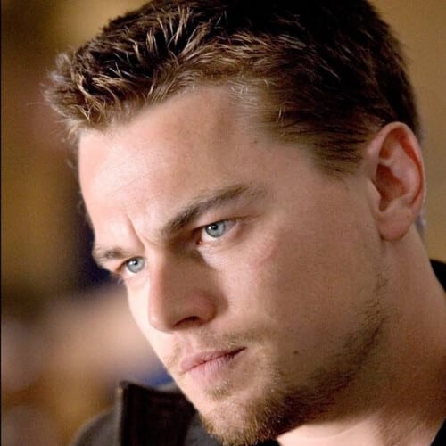 一般のもう一つのお気に入りはシャッターアイランドです。これで、レオは非常に短い髪型を備えており、サイドパーツと層状の羽毛のような櫛を備えています。彼はまた、レトロヘアカットに合った5時の影を着ていました。