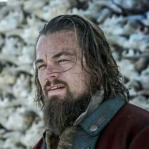 レオはまた、このグリズリーの外観を身に着けていたとき、非常に大きくてふさふさしたひげに長い髪を含むこのグリズリーな外観を誇っていました。また、レオナルド・ディカプリオスの長い髪とひげのスタイルは、変装にわたることはありませんでした。