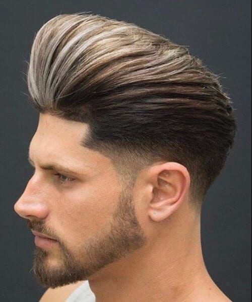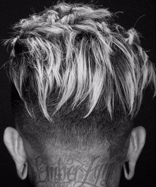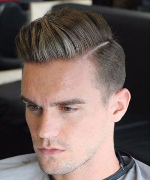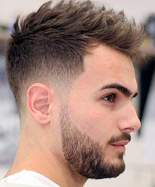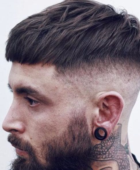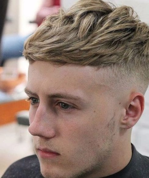 この髪型はフランスの作物と呼ばれています。私たちはそれが大好きです。なぜなら、それは非常に男らしいように見え、上にすべての髪が正面にとまるのを尻に置いているからです。私たちはまた、フェードが非常に深く、何よりも剃っているという事実の大ファンです。