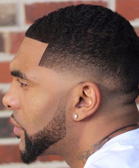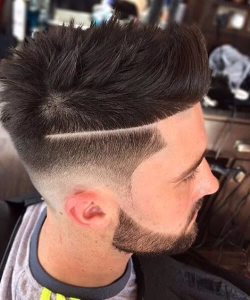 名前が示すように、切断されたヘアカットは、髪のどこかに難しい部分を含むカットです。アイデアは、あなたの髪型やヘアラインがもう連続していないということです。これは、低フェードとあごひげがあるモダンなキッフの完璧な例であり、困難な部分を備えた困難な部分を備えています。