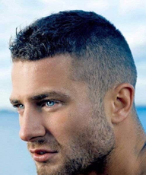 これは、軍事基地の範囲から逃れ、スタイルとファッションの主流に入った別のタイプのバズカットです。スタイリストは、4〜3人のガードを使用して、サイドのテーパーの下位の警備員と低いガードを提供する必要があります。