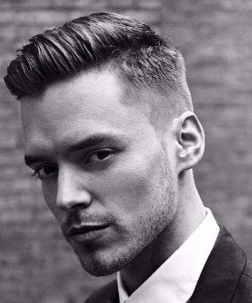 紳士の低いフェードは、小さな髪の製品を備えた小さいながらも非常に手入れの行き届いたポンパドールで構成されています。明らかに、あなたはそれをとても紳士的にする完璧なサイド部分を確立するために特別な櫛が必要になるでしょう。