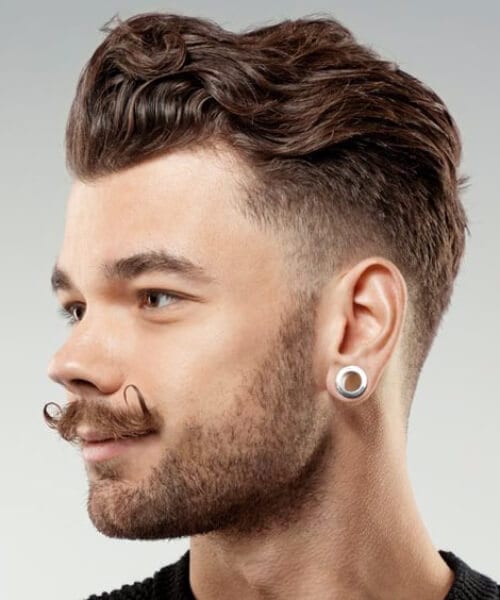 低フェードのヘアカットがそれ自体で十分にクールではなかったかのように、それをわずかに傾斜したポンパドールとペアにするのはどうですか?それは、無謀でありながらおしゃべりな紳士の空気を与えます。