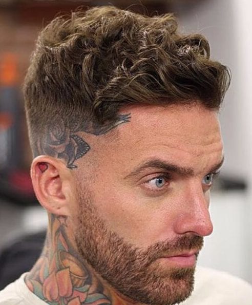 あなたの髪が自然に縮れたり、波状でさえない場合は、心配しないでください。低フェードのヘアカットと長いトップは、多くの創造性を可能にします。カーリングアイロンを使用して、ボリュームと深さの幻想を与えるいくつかの外向きのカールを作成できます。この巻き毛のフェードヘアスタイルはあなたに似合います。