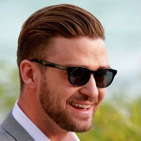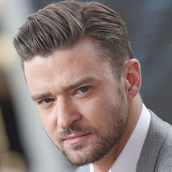 Aquí hay otro peinado con clase para los hombres . JT lleva su cabello resbaladizo y tiene un poco de recorte a lo largo de los lados y la parte posterior del cabello. Este sería un gran estilo para usar todo el día porque si agrega el producto correcto, permanecerá en su lugar para usted.