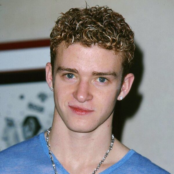 Esta cara de bebé, Justin Timberlake, lleva su estilo clásico de rizos superiores con un poco de recortes. La joven estrella del pop también se ha teñido el cabello rubio aquí y agregó una cadena de oro como una declaración de moda adicional. Este es un aspecto atemporal que cualquiera se vería genial.