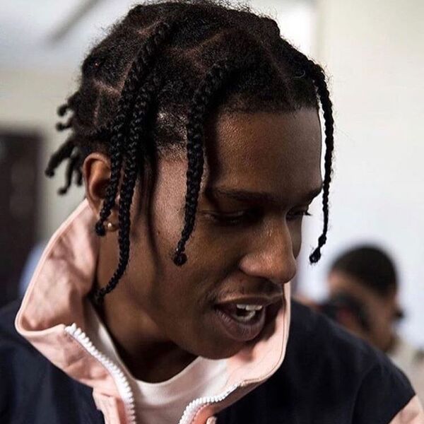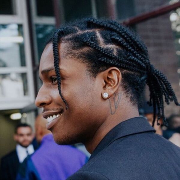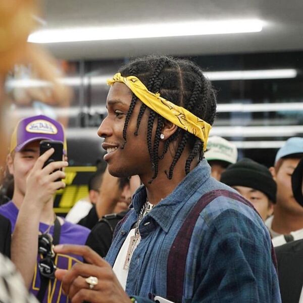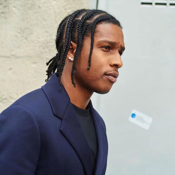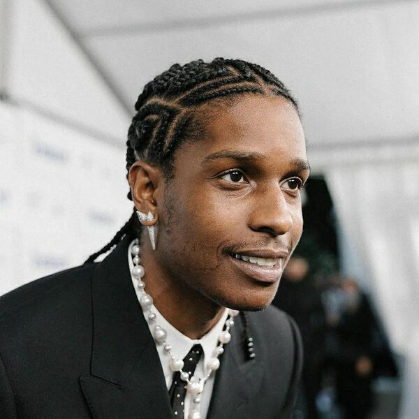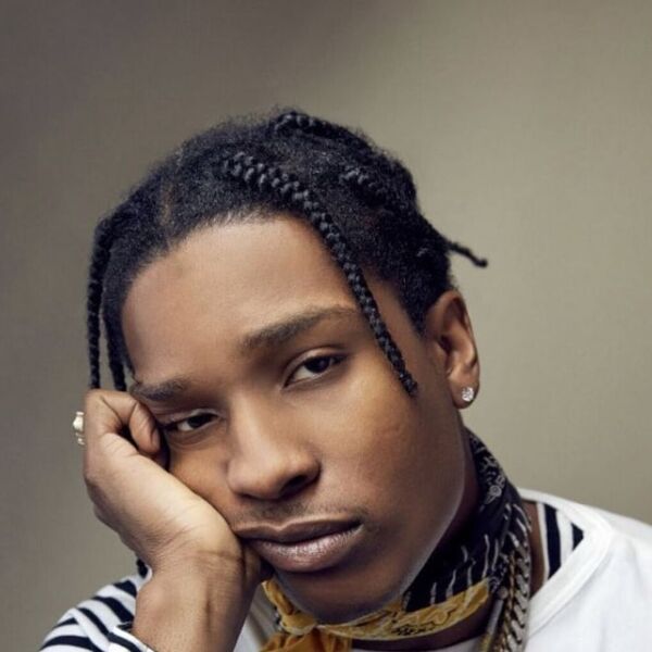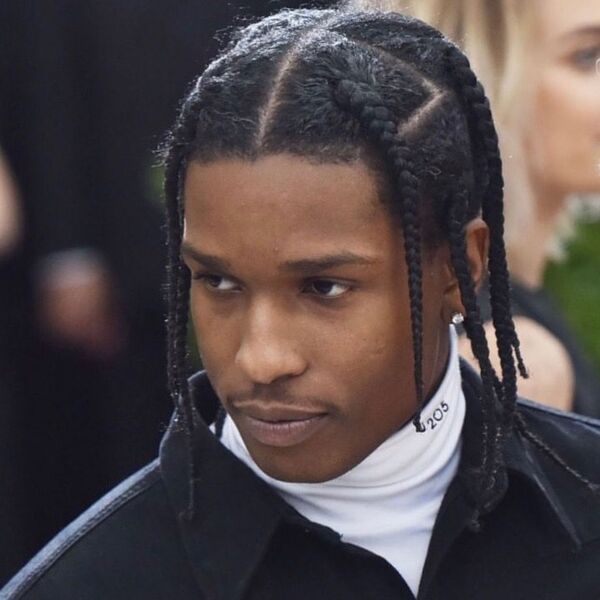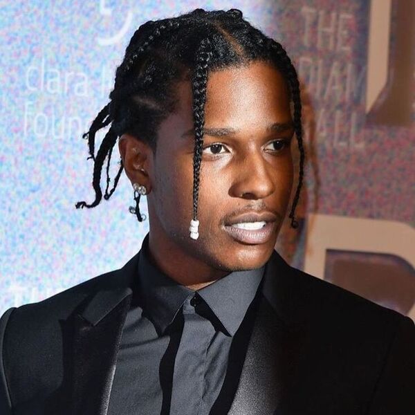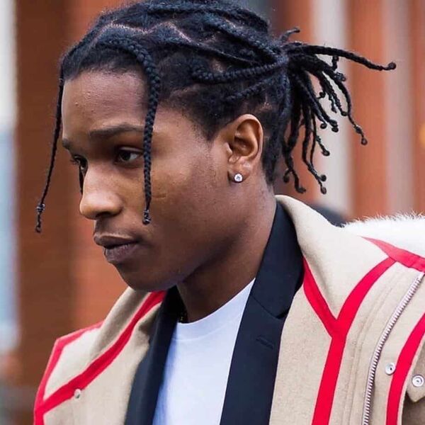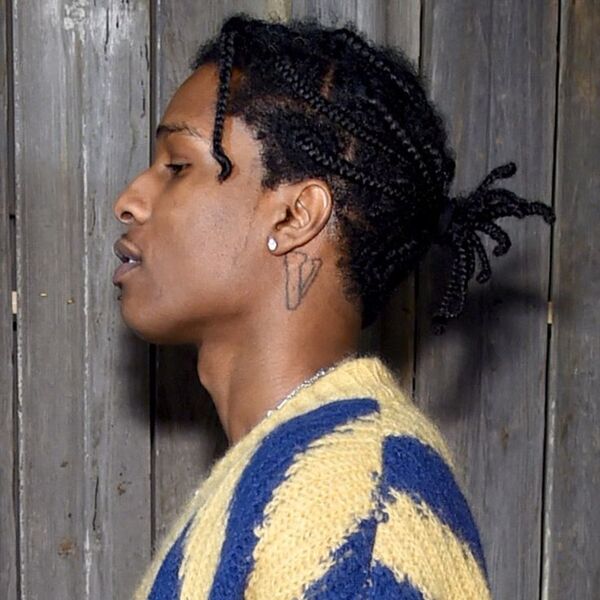 Savā paraksta stilā šeit ir ASAP Rocky ar vienu pinumu, kas karājās vaļā pie pieres. Viņš ir ievilcis pārējos matus atpakaļ zirgaste, lai iegūtu svaigu, stila veidu.