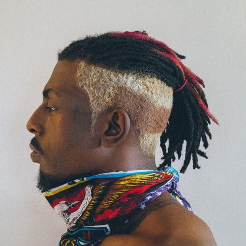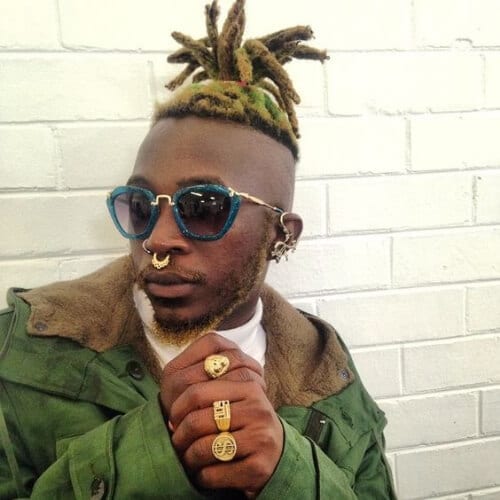 Attieksme ir viss ar šo blondo baiļu izskatu. Šīs nav vienīgās krāsotās dredas šajā sarakstā, taču tas ir pirmais Dreads stils, kurā ir augstas skūtās puses ar garu dredžu augšdaļu, kas tika virzīta uz priekšu, lai radītu iespaidu par Bangs. Tas ir ekstrēmāks uzņemšana īsās pusēs, garais augšdaļa.