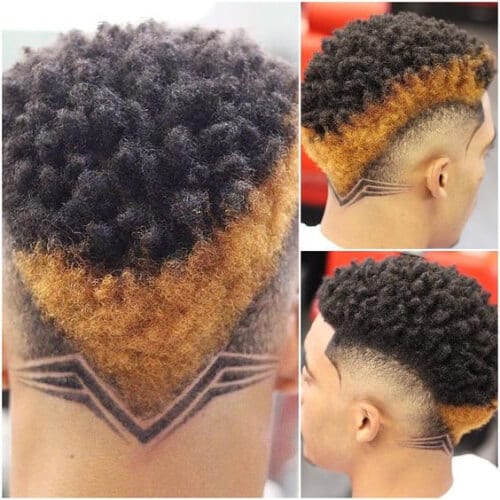 32. Twee kleuren krullende kapsels voor zwarte mannen