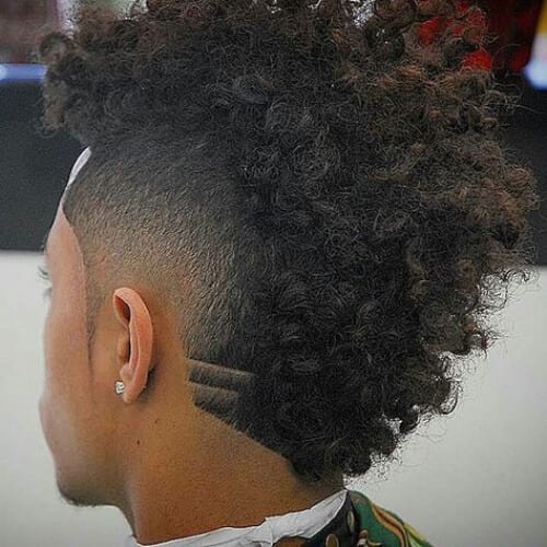 10. Fauxhawk met geknipte zijkanten krullend kapsel voor zwarte mannen