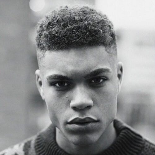 12. Korte krullen met taps fade kapsel voor zwarte mannen