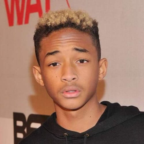 Onze lijst met krullende kapsels voor zwarte mannen bevat ook een paar beroemdheden. Hier is Jaden Smith en zijn soort gewas met een beetje blondine bovenop. Het helpt zowel zijn ogen als zijn teint te benadrukken, terwijl hij zijn jongensachtige uiterlijk behoudt.