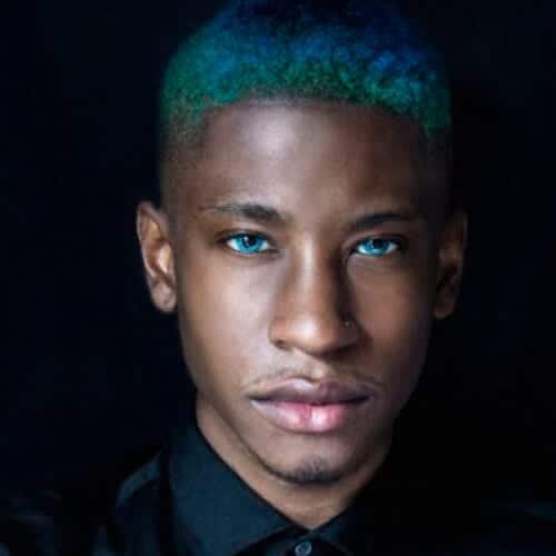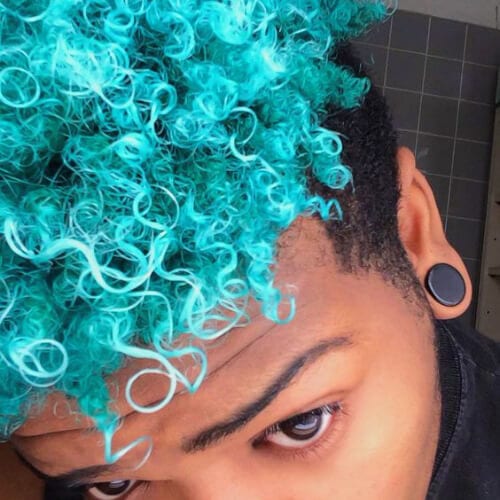 28. Neon blauwe krullende kapsels voor zwarte mannen