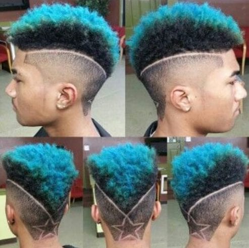 20. Blauw hoog en strak krullend kapsel voor zwarte mannen