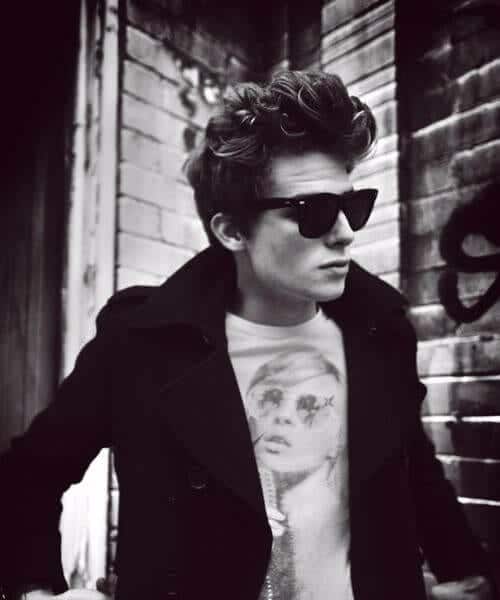 Je inspiratie uit de jaren 60 halen is helemaal geen slechte zaak. Moderne hipsters hebben dat ERA beweerd en er een hele subcultuur omheen gecreëerd. Dit is wat we een eigentijdse Bob Dylan-look zouden noemen, met veel noodlijdende golvend haar, hipster-bril en een cool T-shirt. Een klassiek kapsel voor mannen met golvend haar.