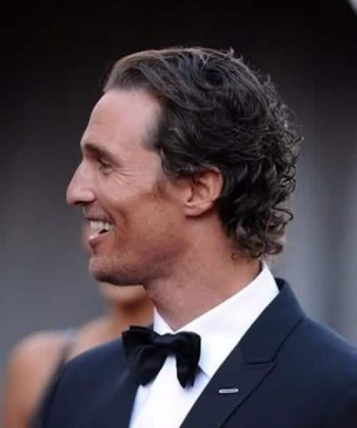 Oké, oké, oké! We wedden dat je dat net in zijn stem hebt gelezen, nietwaar? De acteur draagt graag zijn haar in een middellange lengte, gladd over de kroon van zijn haar met veel haarproducten. Op deze manier verzamelen al zijn krullen zich bij de nek van de nek.