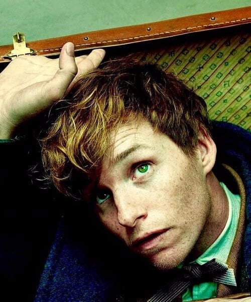 Het is de Eddie Redmayne in Fantastic Beasts als Newt Scamander. Ziet hij er niet gewoon schattig uit? Kapsels voor mannen met golvend haar lijken bij hem te passen, omdat hij een heel dun en hoekig gezicht heeft.