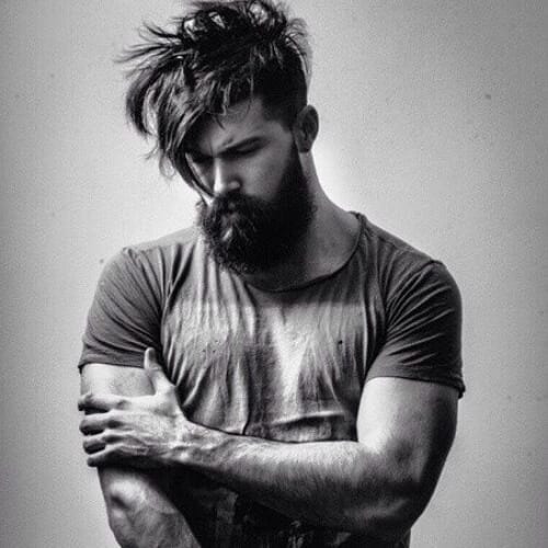 Als je voor een meer robuuste look gaat, kun je altijd je rommelige kapsel combineren met een almachtige baard. Hier is echter een tip. Investeer in baardolie van goede kwaliteit omdat u het zeker nodig hebt.