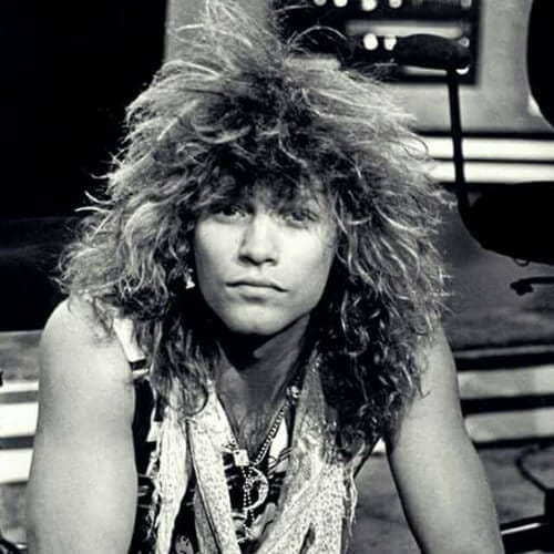 Er was geen manier waarop we een lijst met kapsels voor mannen hadden kunnen samenstellen en geen throwback -foto hadden opgenomen tot de geweldige leeftijd van glam rock. Heres Jon Bon Jovi en zijn manen van krullend kroeshaar dat toen de belichaming van stijl was.