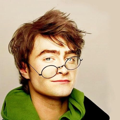 Zijn beroemde boek tegenhanger wordt beschreven als een wirwar van jetzwart haar dat altijd rommelig was, ongeacht hoeveel hij het heeft gekamd. Daniel Radcliffe was de perfecte belichaming daarvan in de films en het leven.