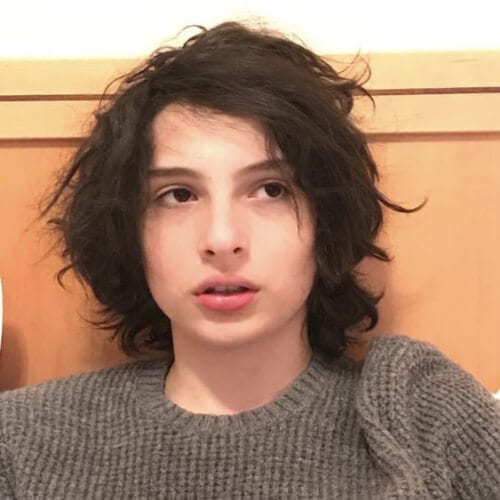 Hier is daarentegen wat er vandaag de dag voorbij gaat in de persoon van een frisse acteur Finn Wolfhard. Hij heeft het typische en bijna verplichte, gemiddelde tiener kapsel dat alle jongens van zijn leeftijd moeten doorstaan.
