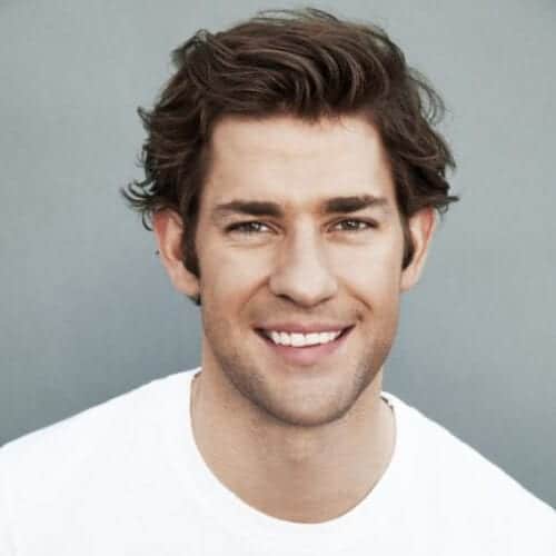Hoewel een klassiek knappe man, heeft John Krasinski altijd zijn jongensachtige charme behouden met een duivels schattige glimlach en een rommelig hoofd van haar. Om zijn baas Jo van het kantoor te citeren, is hij een lange drankje van zonnethee. Bekijk meer herenkapsels voor ovale gezichten .