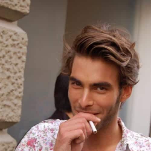 Unaniem erkend als een van de meest knappe en succesvolle mannelijke modellen aller tijden, weet Jon Kortajarena misschien iets of twee over mode en styling. Hij is heel gedeeltelijk voor dit rijke gescheiden kapsel van de chocoladezijde dat zijn buitengewone kenmerken benadrukt.