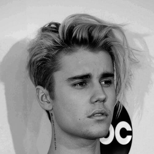 Zodra hij een beetje volwassen werd en nog geen tiener met een baby-gezicht was, begon Justin Bieber ook hedendaagse kapsels voor mannen te sport. Hij koos voor platina of flessenblondjes.