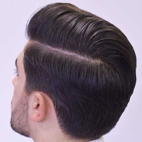 Mannen hadden een interessante mode in de jaren 1950 en hier is een stijl die sindsdien is blijven bestaan. Dit is een eenvoudige stijl die het haar aan de ene kant onderdeelt en naar de natuurlijke haarlijn wordt getrimd.