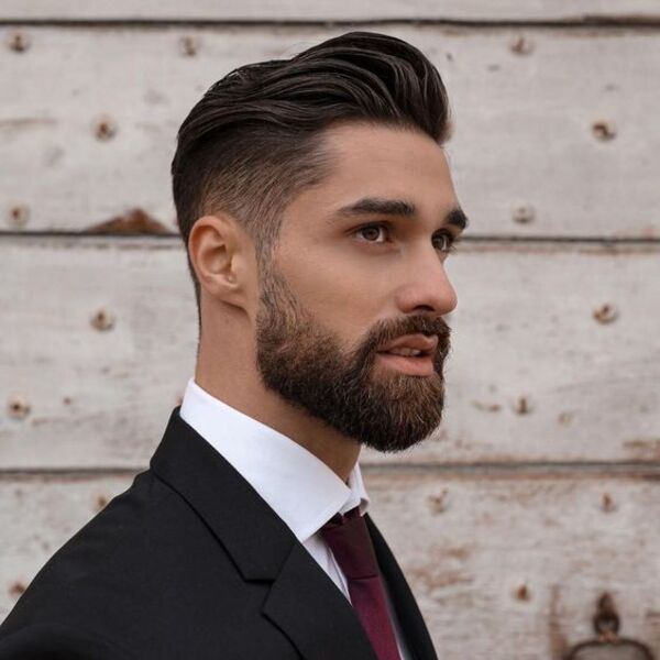 Hier is een knappe gladde achterbakke ondermijning met een baardstijl. In 2025 zijn baarden op de meeste werkplekken acceptabel, maar zorg ervoor dat je baas er goed mee is voordat je je baard kweekt.