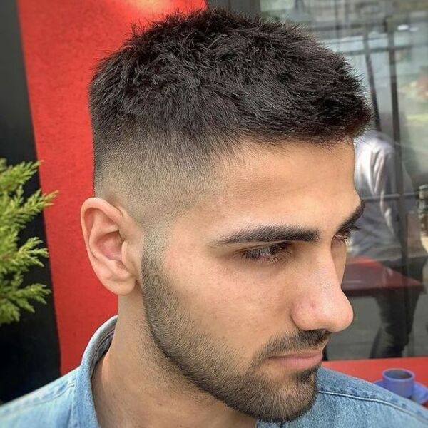 Eerst op de lijst is deze eenvoudige buzz-cut look. Dit is een klassiek kapsel dat nooit uit de mode zal raken en voor altijd in de zakelijke omgeving is gedragen.