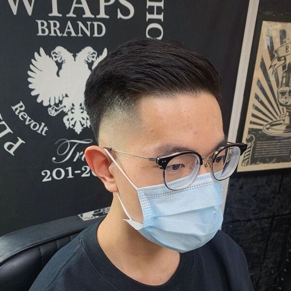Fades hebben hun plaats in de zakenwereld en hier is een prachtig voorbeeld van hoe ze in uw bedrijfsleven kunnen worden opgenomen. Hij heeft twee eenvoudige ontwerpen in zijn vervaging toegevoegd en het haar op de top achtergelaten, en het ziet er zo stijlvol uit.