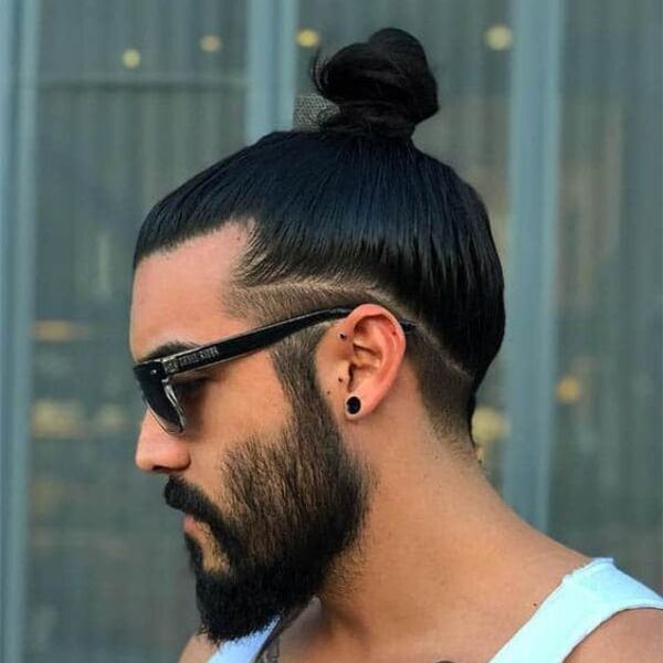 Mannen met lang haar kunnen er ook professioneel uitzien. Kijk eens naar deze knappe stijl hierboven, hij heeft de zijkanten mooi geknipt en heeft de rest van zijn haar omhoog getrokken in een mooi strak low man -broodje .