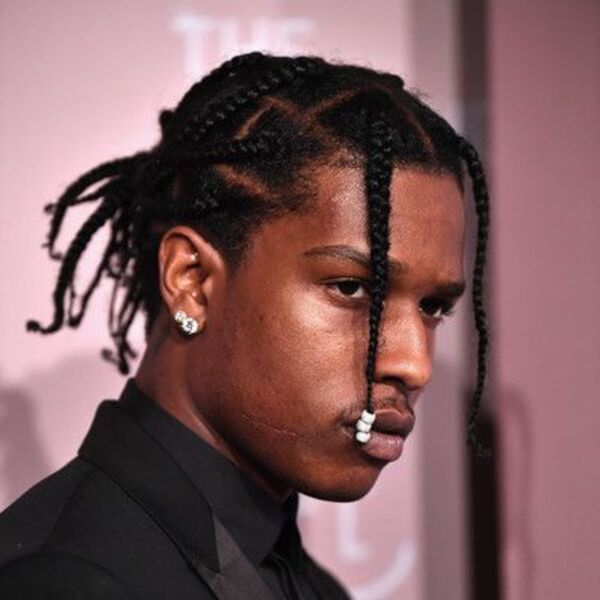 Wie zei dat rappers er niet professioneel uit kunnen zien, ze stellen vaak de trends in voor de jongere generaties. Hierboven draagt hij korte doosvlechten en liet hij een streng achter in de voorkant met een paar kralen op de bodem. Deze stijl zou geweldig zijn als je je best probeert te zien op het werk.
