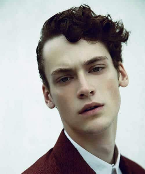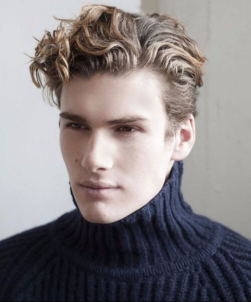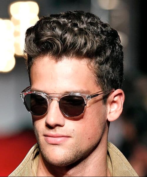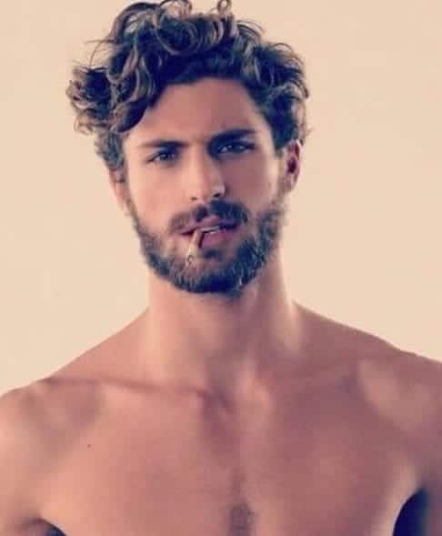 Ja, jongens kunnen ook strandgolven dragen, en met succes kunnen we toevoegen. Dit is een perfect voorbeeld van hoe glamoureuze korte krullende kapsels voor mannen daadwerkelijk kunnen krijgen. Neem wat haarwas in je vingers en loop ze vervolgens door je haar om het te stylen.