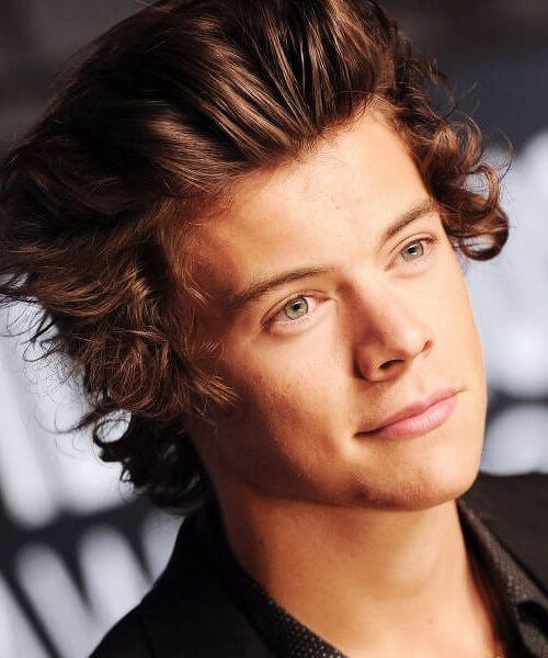 Dit voormalige One Direction -lid, Harry Styles , is een andere trotse voorstander van korte krullende kapsels voor mannen. Hij droeg zijn gleed achterover over de kroon van het hoofd met ringjes die in de tempels werden getoond.