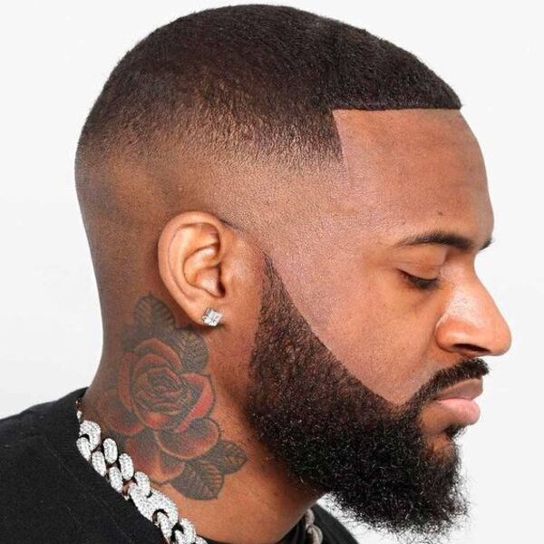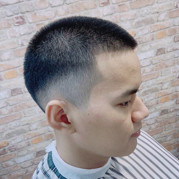 38. Lage tempel vervagen kapsels voor mannen met buzz cut