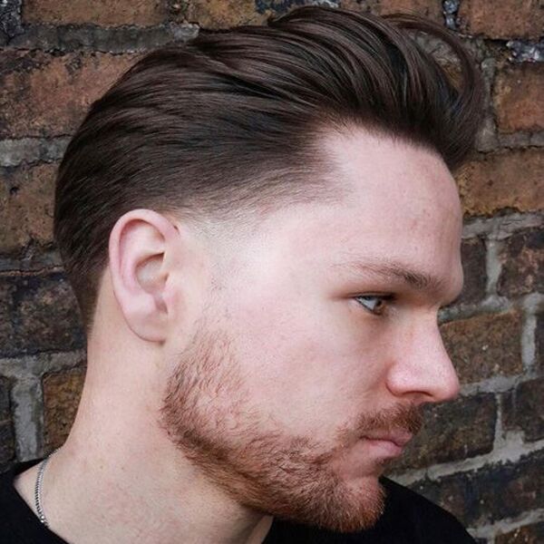 Heb je dit stijlvolle pompadour -kapsel gezien voor mannen die weer opduiken? Het is een oude stijl uit de jaren 1950 die de cirkel rond is en weer cool is. In deze stijl werkt onze uitgelichte Fade geweldig in het kort houden van de zijkanten en de top lang genoeg om te stylen in de perfecte pompadour -look.